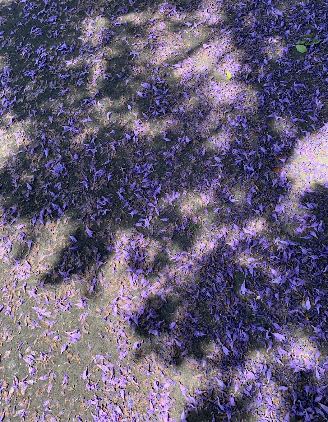 Rồi nữa là những xác hoa trải tím lối đi, những lối hoa dịu dàng, thơ mộng. Mình thường tránh không muốn giẫm đạp lên hoa, nhưng có lần cũng vô tình bước trúng vài chỗ hoa rụng tím. Đúng thật như đã từng đọc ở đâu đó, phượng tím rụng trên đường khi bước lên sẽ tạo ra âm thanh lộp rộp lộp rộp nghe rất giòn giã và vui tai.